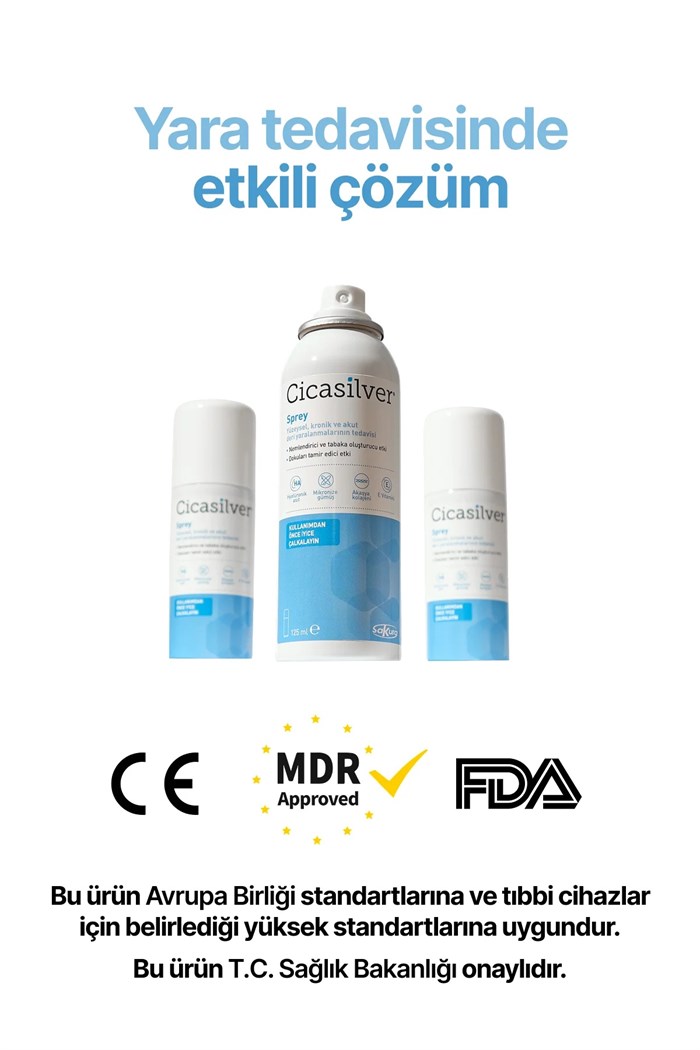 - Cicasilver® Sprey , Akut ve kronik yaraların iyileşme sürecini destekler.