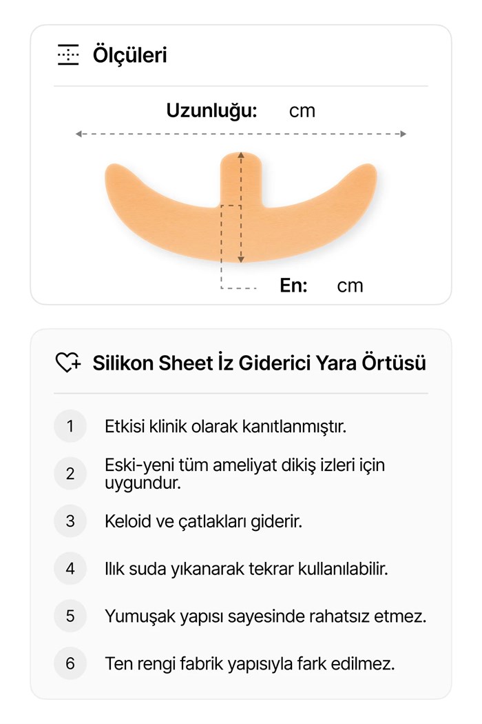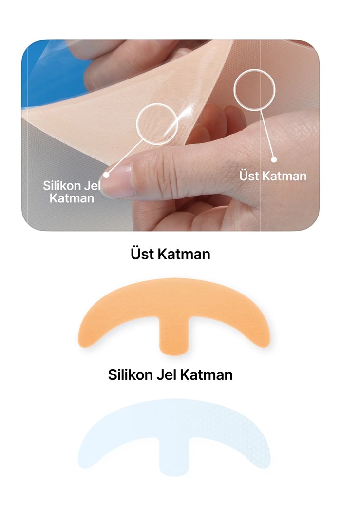 Bu yumuşak, ince, tekrar kullanılabilen ve kendinden yapışkanlı silikon jel tabaka, esas olarak silikondan yapılmıştır. Hem mevcut hem de yeni oluşan hipertrofik veya keloid skarların yönetiminde kullanıldığı gibi iyileşme sürecindeki yaralarda hipertrofik veya keloid skar oluşumunu önlemek için profilaktik bir tedavi olarak da etkilidir.