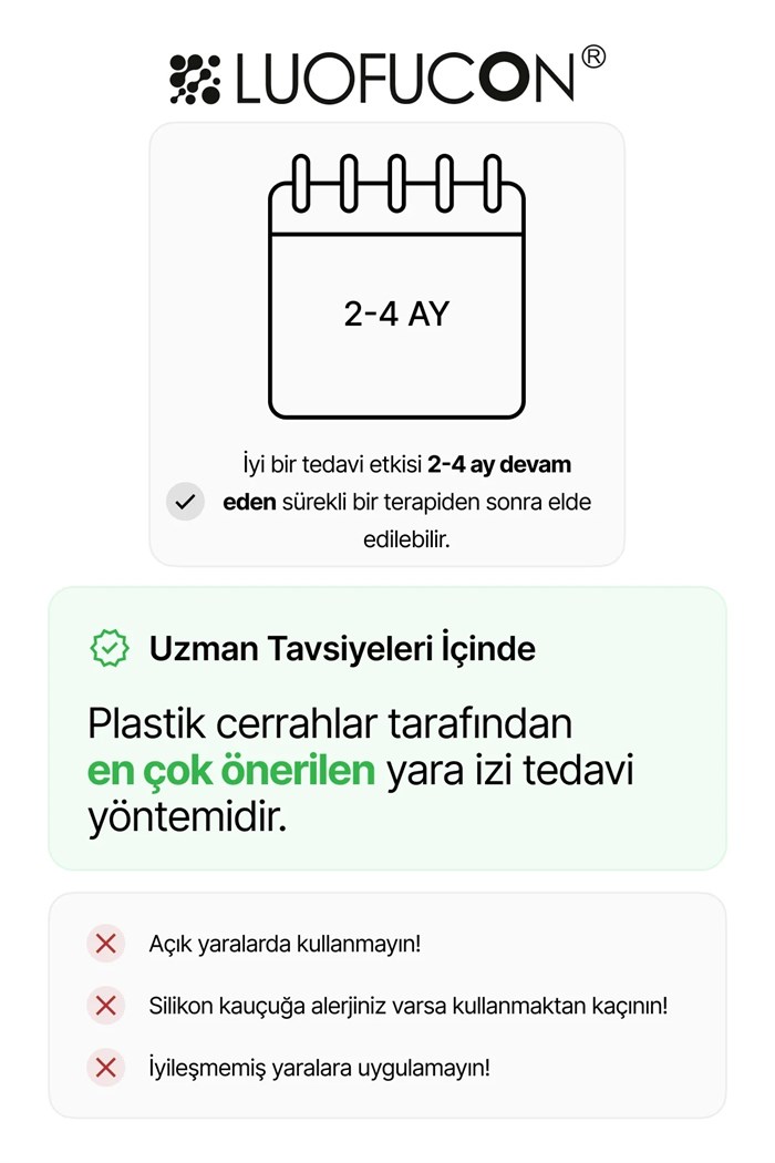 LUOFUCON® Silikon Jel Yara İzi Pansumanı, cilt yüzeyinde tahrişe neden olmadan, yara izlerini etkili bir şekilde yönetir ve önler. Yara izleri üzerinde gözle görülür iyileşme sağlar ve hastaların cilt sağlığını yeniden kazanmalarına yardımcı olur.