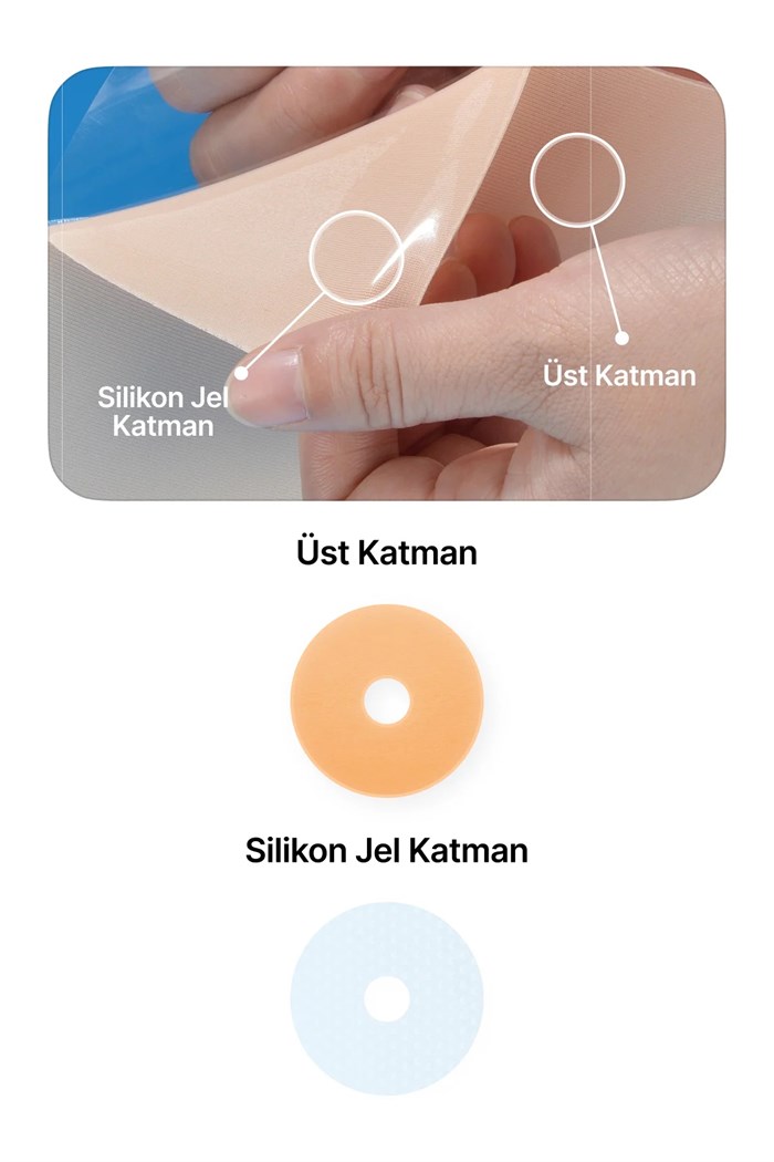 Bu yumuşak, ince, tekrar kullanılabilen ve kendinden yapışkanlı silikon jel tabaka, esas olarak silikondan yapılmıştır. Hem mevcut hem de yeni oluşan hipertrofik veya keloid skarların yönetiminde kullanıldığı gibi iyileşme sürecindeki yaralarda hipertrofik veya keloid skar oluşumunu önlemek için profilaktik bir tedavi olarak da etkilidir.