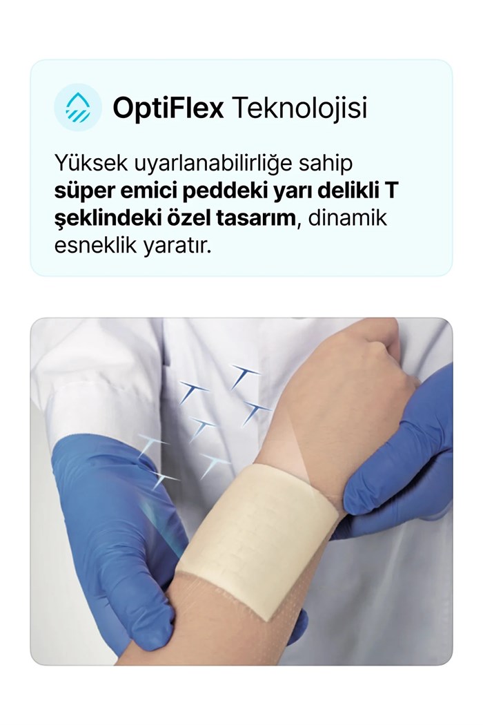 Yüksek emilim kapasitesi ile eksüdayı hızla emer ve hapseder