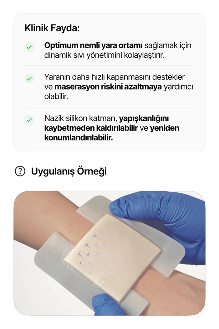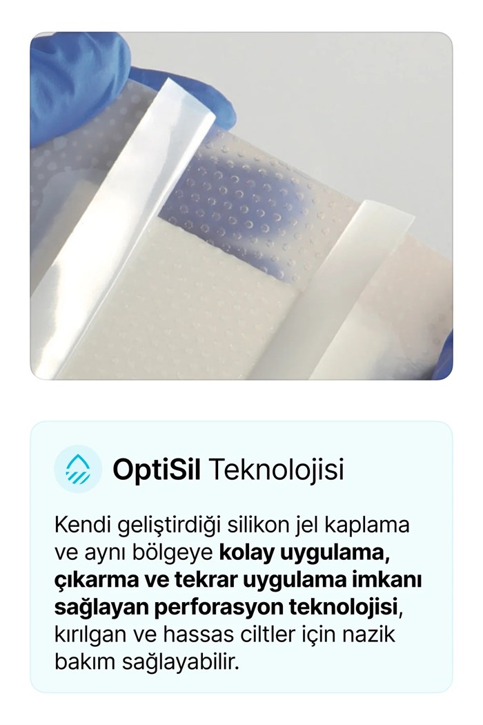 Ağrısız uygulama ve çıkarma sağlayan nazik silikon yapışkan